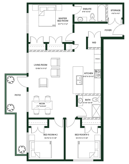 Suite Area: 911 Sq.ft